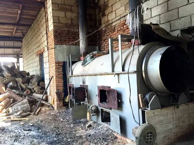 建在茶山里的初制厂鲜叶杀青结合使用手工锅炒杀青和柴烧滚筒杀青。