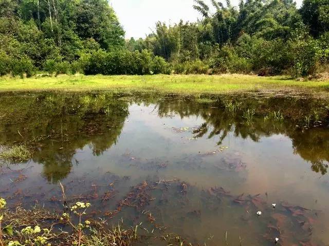 一路山花盛开、鸟语虫鸣,湿地的水面漂浮着朵朵白色的水性杨花,偶尔还能在地上捡到一些野果。