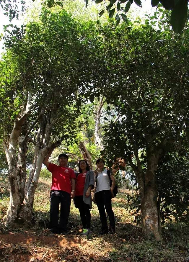 行进了一段时间,成片的古茶树出现在我们面前,还有勐宋茶山树龄最大的两棵茶树——“茶王”、“茶后”,据说树龄达到1300多年。