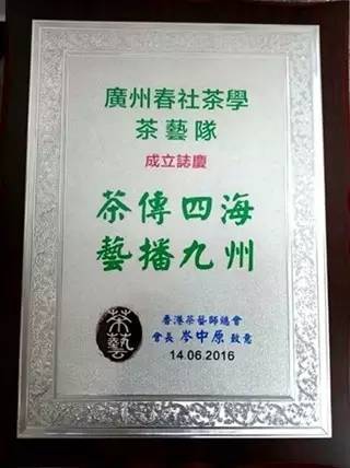 春社茶艺队获“香港茶艺师总会颁’茶传四海,艺播九州’成立纪念匾”