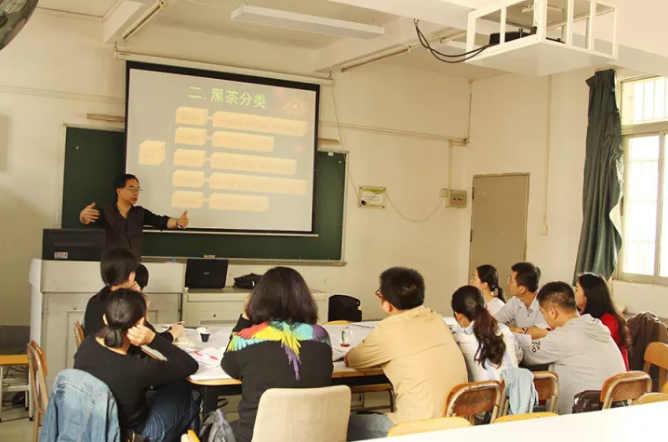 李启斌老师在给学员们讲黑茶审评的理论知识…