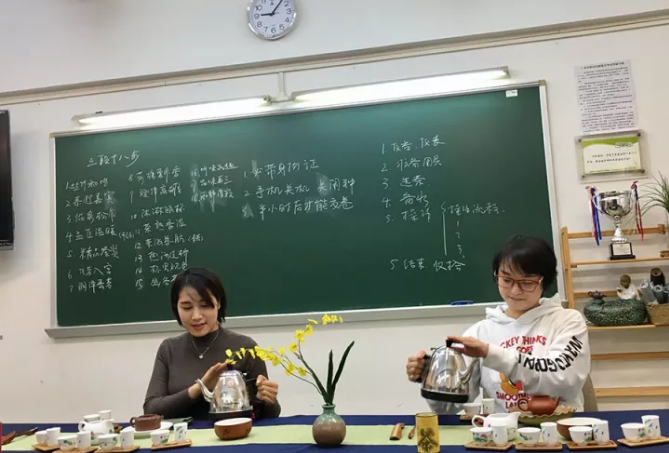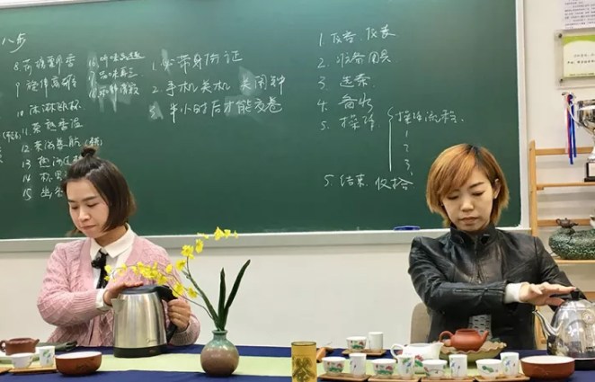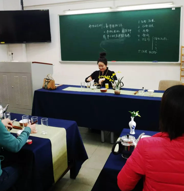 接下来,我们还安排了连续三天的茶艺冲泡课程,主要内容是茶艺美学和冲泡技巧,通过老师的示范和讲解,同学们的现场反复练习,让大家真正学会冲泡一道茶。
