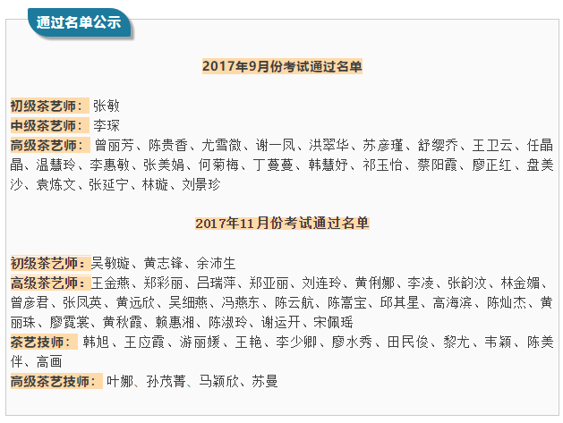 2017年9、11月份鉴定考试“茶艺师职业资格证书”领取通知