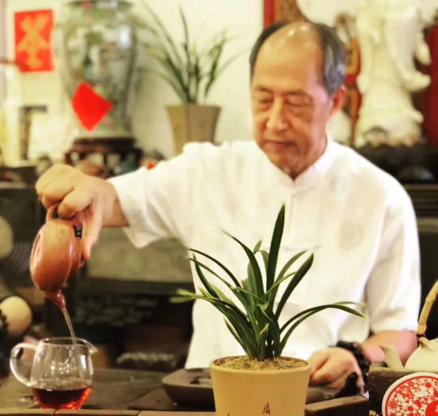 认真泡茶中的陈老