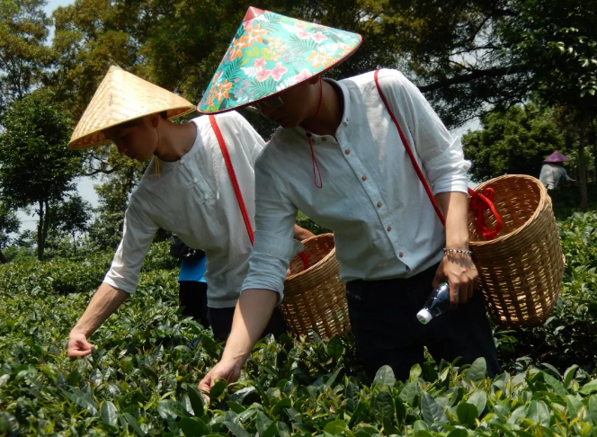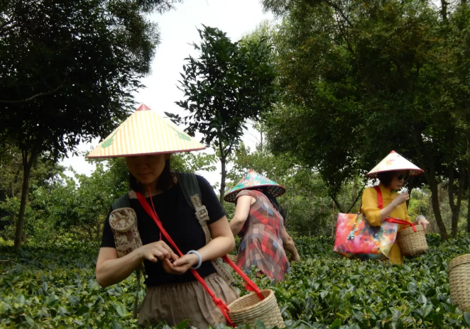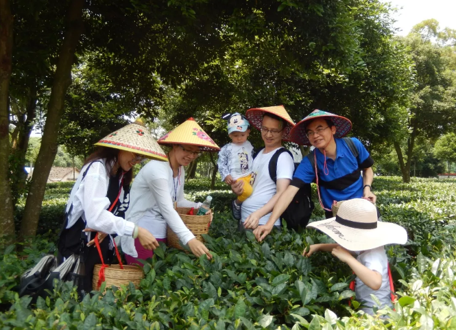 随后,大家兴高采烈地带其采茶“装备”来到春社教学实践茶园体验采茶过程