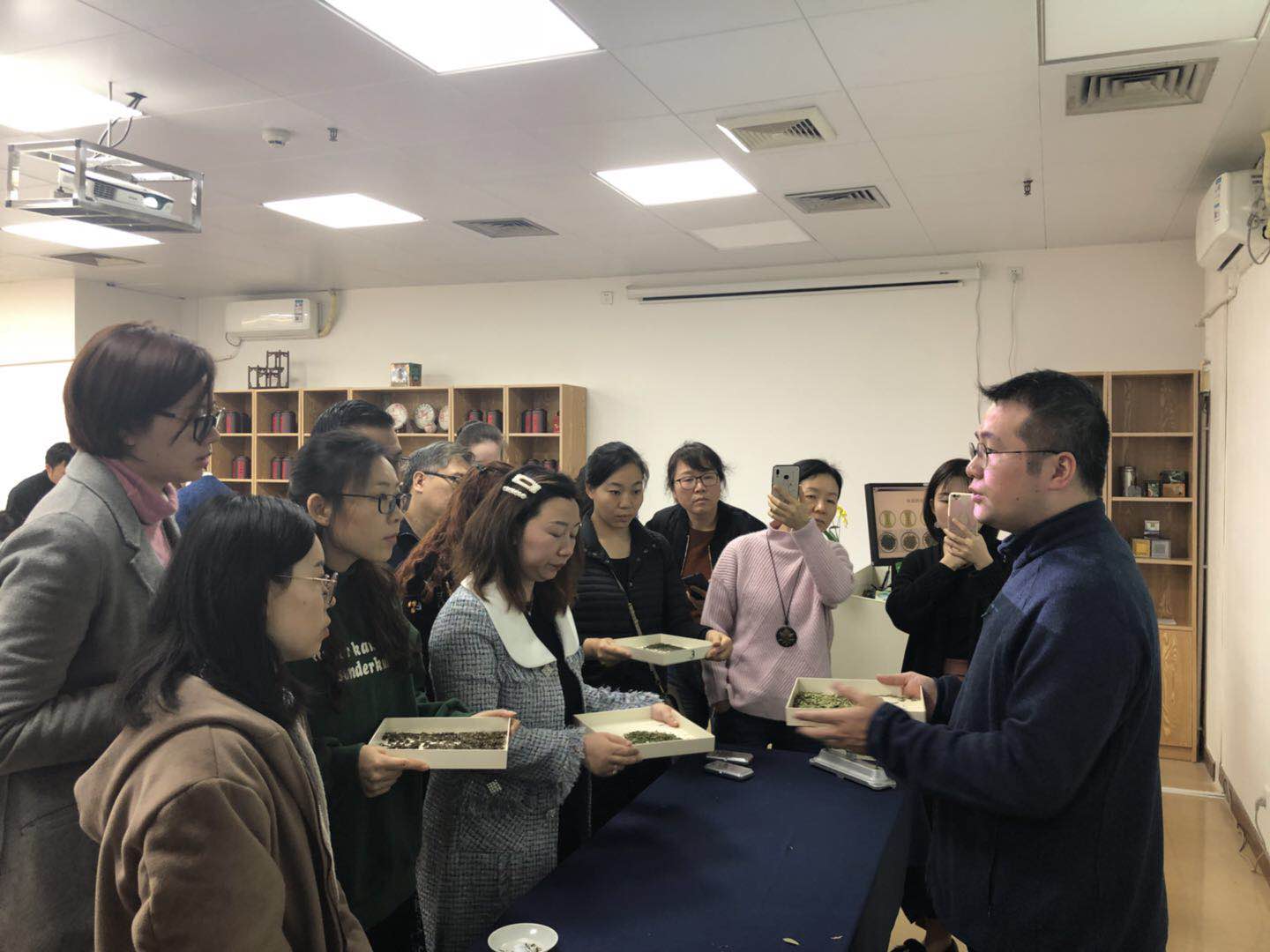 上午,孙老师先总结了描述绿茶外形、汤色、香气、滋味和叶底的专业术语,然后选取恩施玉露、龙井、黄山毛峰、云南晒青毛茶进行审评实操。看似简单柔弱的绿茶很快让同学们眼花缭乱、应接不暇。深浅不一的叶色,婀娜多姿的条索,浓淡有别的香气、鲜爽各异的茶汤,在孙老师娓娓道来的讲解中变得鲜活生动,不及细思的学员们生怕漏掉任何重要信息,纷纷举起手机,希望留住那满目琳琅的“绿”。