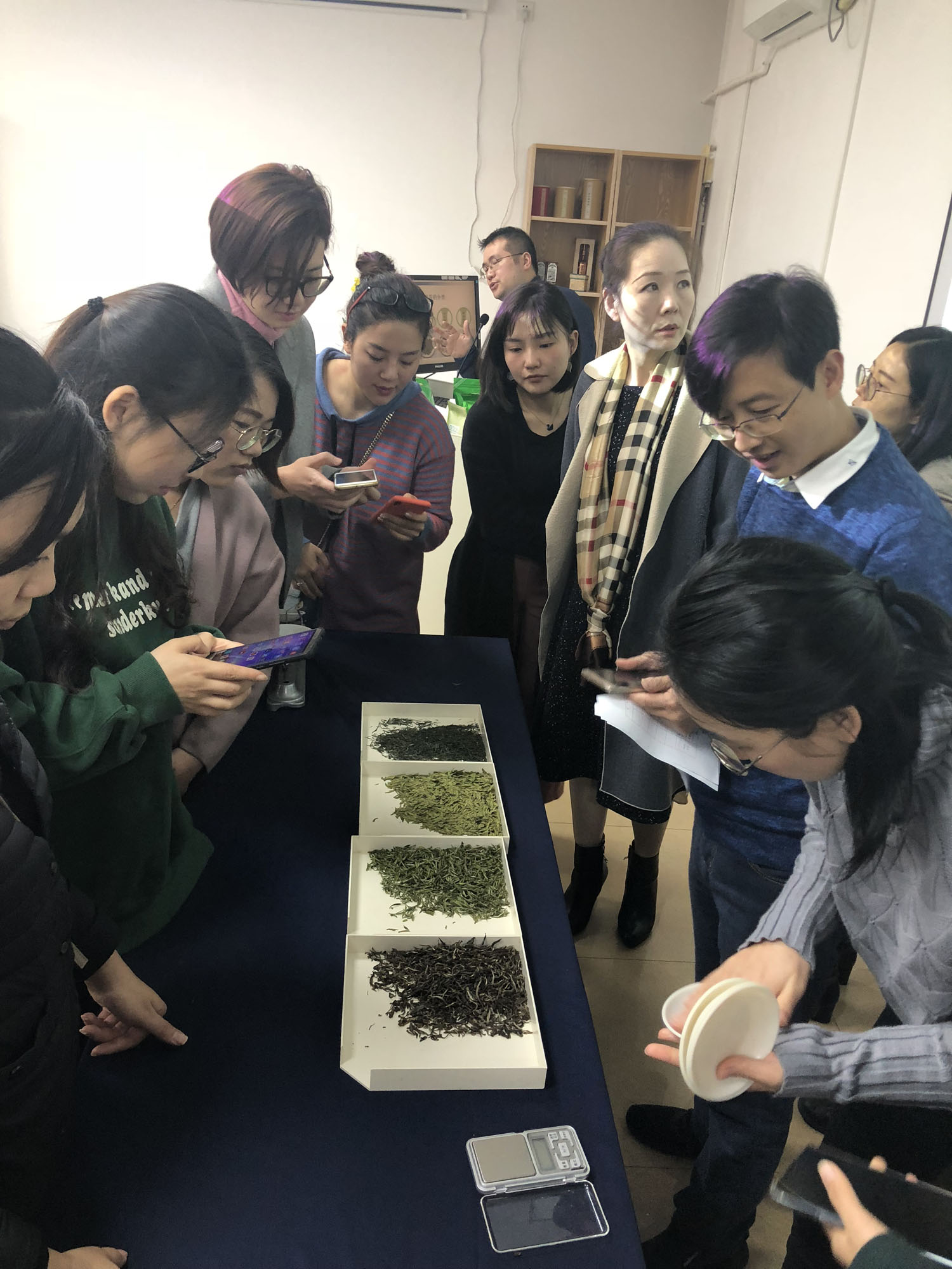 下午,又一波来自不同产地,风格迥异的绿茶骤然袭来,驱赶了大家午饭后悄然而至的倦意。碧螺春、六安瓜片、井冈山靖安白茶、江西狗牯脑、日本蒸青绿茶、湖南农家自炒绿茶、客家炒青绿茶、贵州烘青、广西明前毛尖等等数不胜数。据统计,这一整天的绿茶审评课,大家总共审评了来自五湖四海的15款绿茶!让我们一起看看学员镜头下的这场”饕餮盛宴“!
