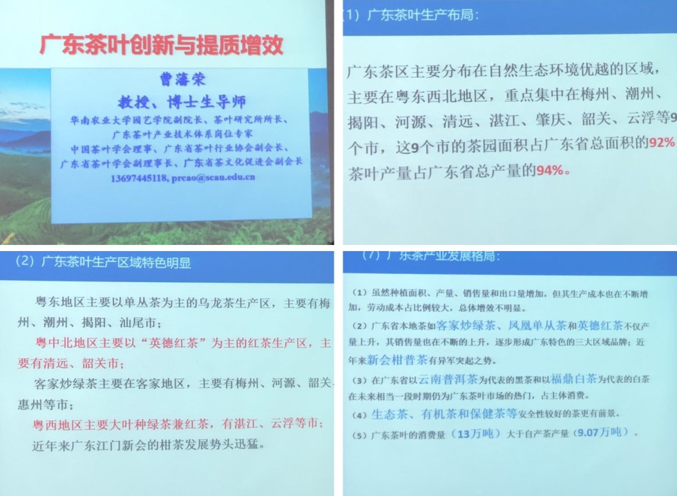 曹老师此次授课的主要内容是广东茶产业发展的简介及广东名优茶的点评与品鉴。上课伊始,曹老师先对广东茶叶的生产现状、特色及广东茶产业的发展格局作了提纲挈领式的概述,为学员带来了许多丰富宝贵的数据和信息,使同学们对茶叶市场的现状和走势有了较明朗的认识