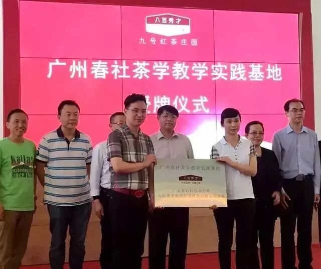2017年4月30日,春社茶学在英德八百秀才九号红茶庄园隆重举行了“广州春社茶学教学实践基地”授牌仪式,九号红茶庄园正式成为春社茶学教学实践基地。