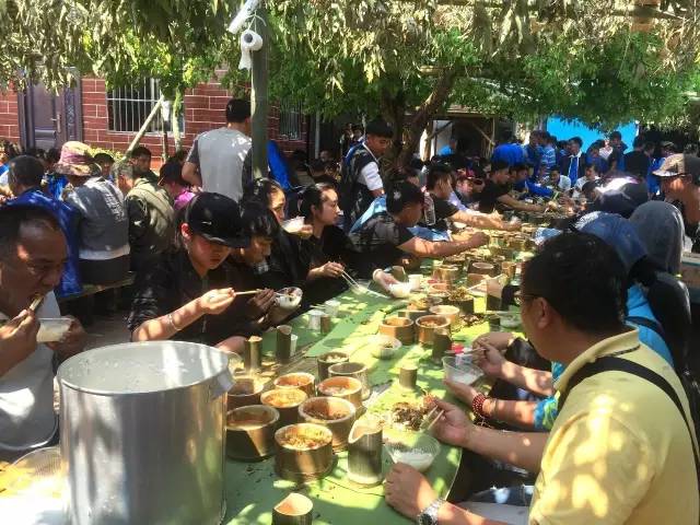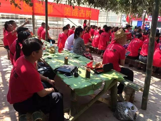 最热闹的要数中午的长桌竹筒宴了,大家一起围桌吃着彝族特色饭,话话家常,就像过年一样。